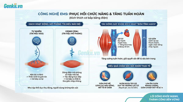 Máy massage chân Genkii ZEN+ sở hữu công nghệ TENS + EMS đang trở thành lựa chọn của nhiều người như một giải pháp hỗ trợ cải thiện các vấn đề thường gặp ở đôi chân: