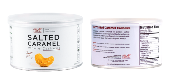 Hạt điều hảo hạng được phủ lớp caramel! Hạt điều caramel Kaz™ có kết cấu giòn và vị kem quyện với lớp caramel tan chảy trong miệng bạn. Dù thế nhưng hạt điều caramel muối của Kaz vẫn giữ các thành phần tự nhiên có lợi cho sức khỏe và hoàn toàn không chứa chất tạo ngọt nhân tạo hay chất bảo quản. Giúp bạn yên tâm đắm chìm trong khoảnh khắc ngọt ngào!