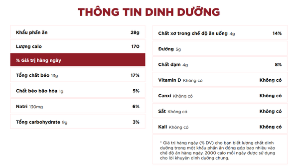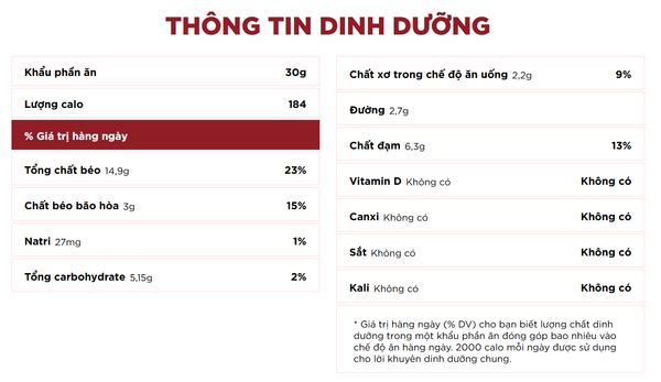 Thành phần: Hạt điều, muối, dầu hướng dương