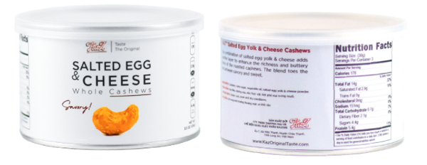 Sự kết hợp giữa lòng đỏ trứng muối & phô mai làm tăng độ béo ngậy và hương vị “mượt mà” của hạt điều rang. Sự pha trộn giữa ranh giới của mặn và ngọt đã tạo nên một món snack nịnh miệng, khiến bạn không thể chối từ. Được thêm vào phô mai và trứng muối thật, Điều rang vị phô mai trứng muối của Kaz hứa hẹn sẽ mang lại những tầng hương vị độc đáo, khác xa so với những sản phẩm trên thị trường.