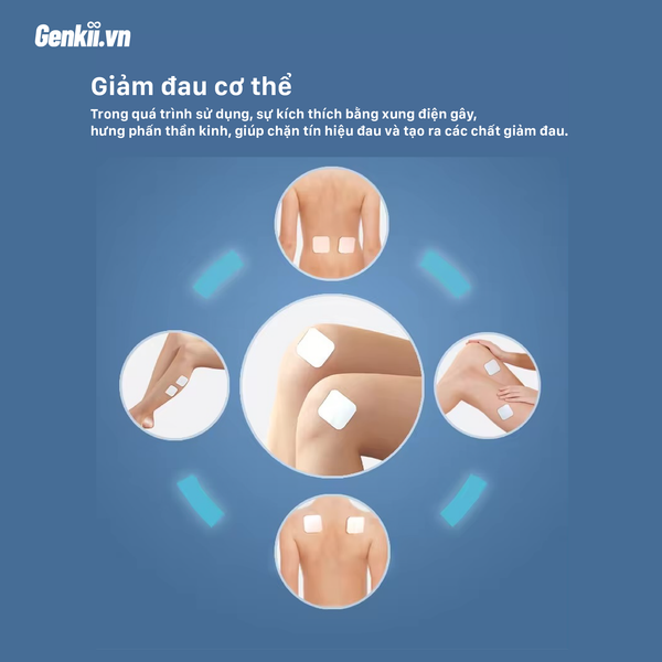 - Miếng điện cực toàn thân giúp giảm đau tạm thời ở cổ, lưng, vai, tay, chân và hông